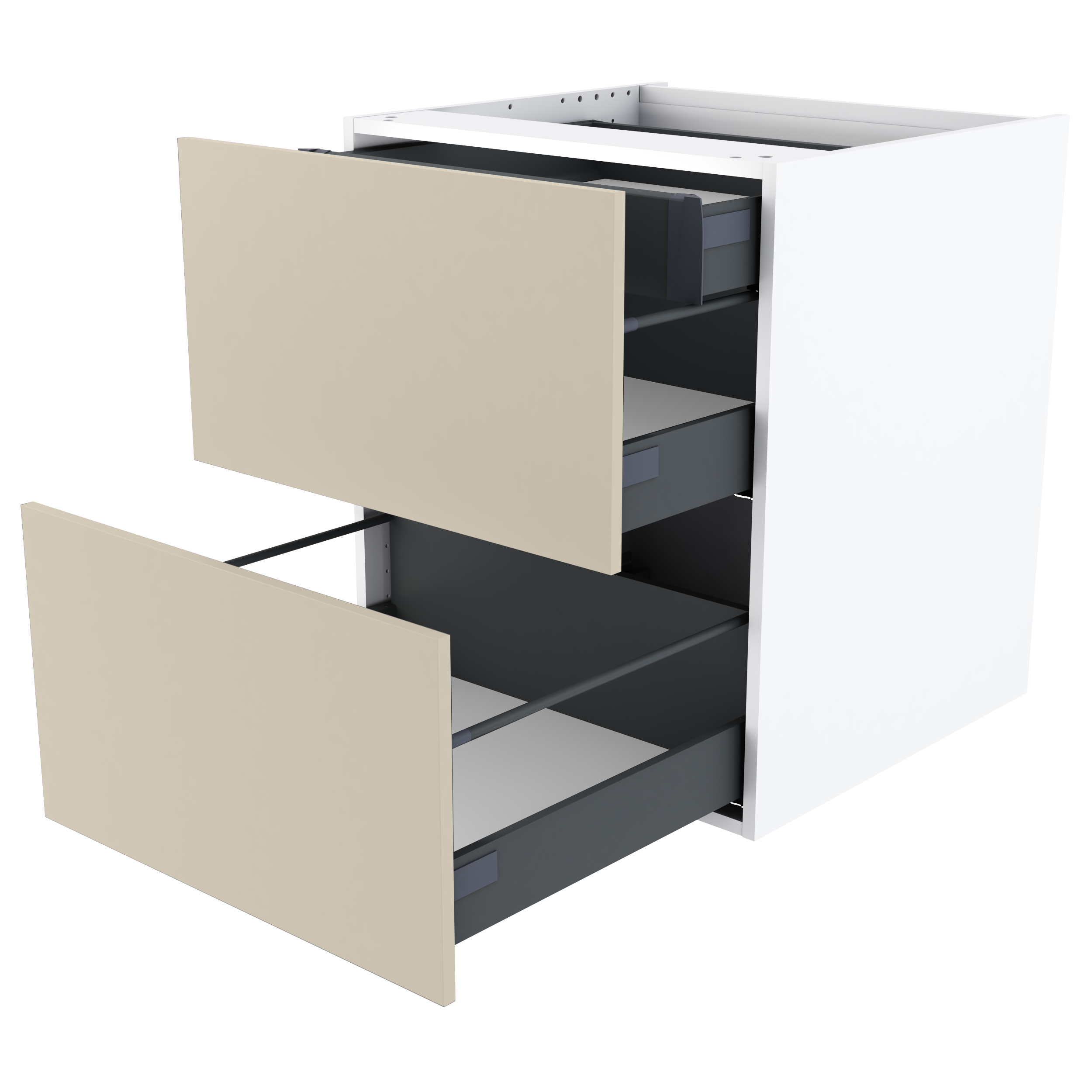 Indretningen af køkkenskabene skal være hensigtsmæssig. Vælg underskabe med skuffer og sammensæt skuffeindsatse og rumdelere, så de giver dig den mest optimale indretning I hverdagen.